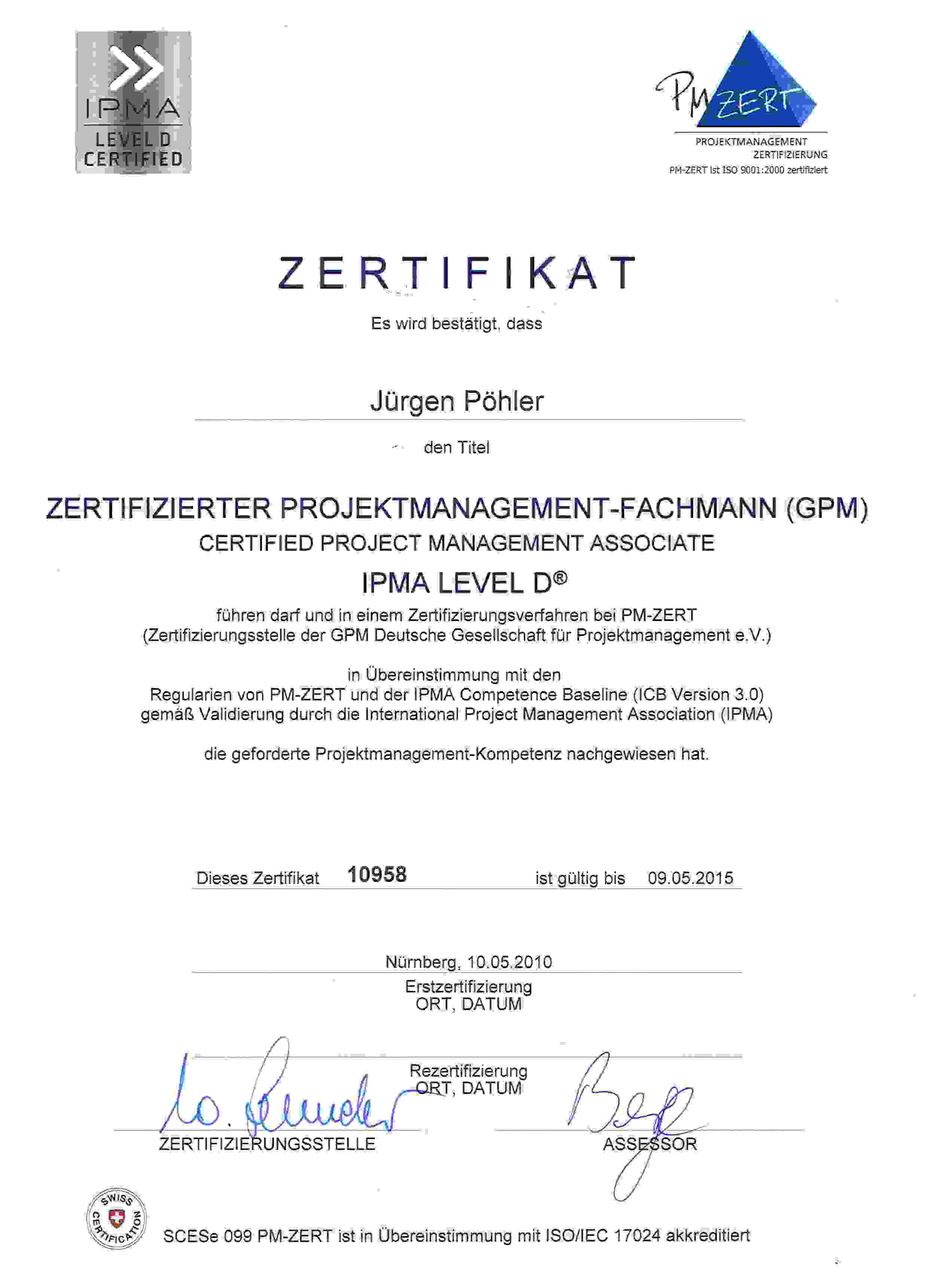- Teilprojektleitung im Bereich Oracle, GPM/IPMA Zertifikat